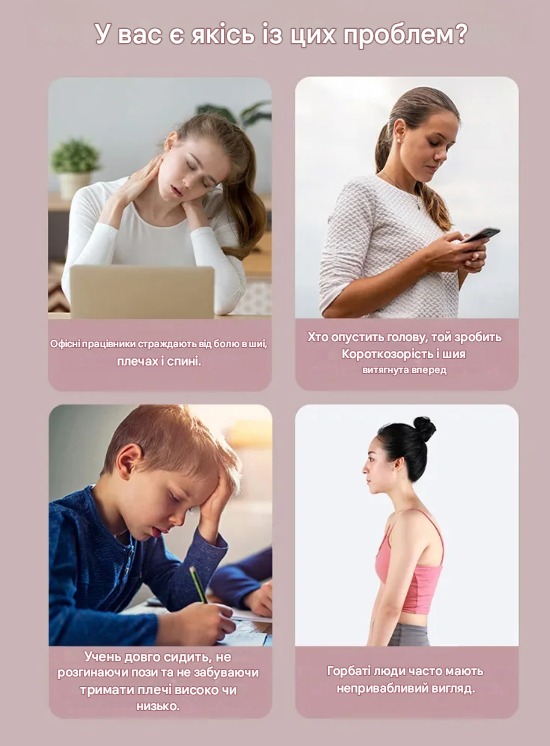 "Мучилася зі спиною після роботи за ноутбуком. Уже після кількох днів використання помітила покращення! Спина рівніша, біль майже зник."